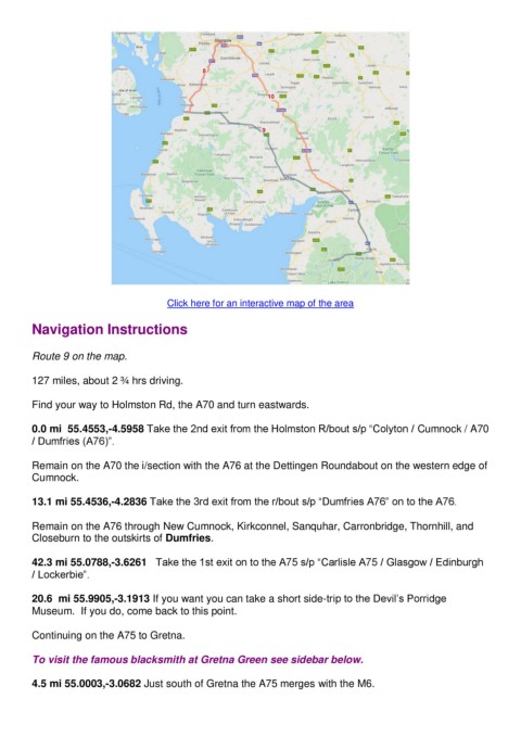 13.1 mi 55.4536,-4.2836 Take the 3rd exit from the r/bout s/p “Dumfries A76” on to the A76.