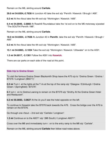 Remain on the M6, skirting around Carlisle then follow road notes above.