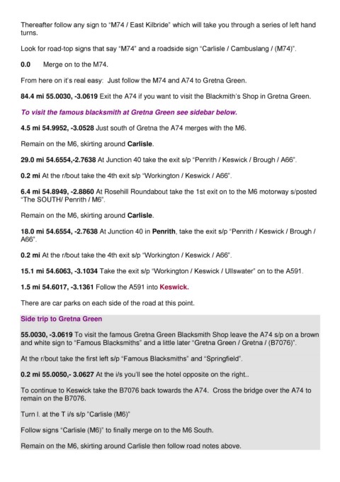 Remain on the M6, skirting around Carlisle then follow road notes above.