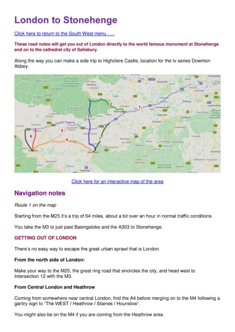 These road notes will get you out of London directly to the world famous monument at Stonehenge