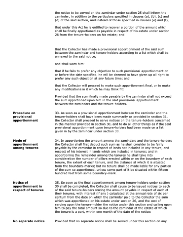33. As soon as a provisional apportionment between the zamindar and the tenure-holders shall have been made summarily as provided in section 31, the Collector shall proceed to serve notices on the tenure-holders concerned in the manner provided in section 30, and to do all other things as if the said