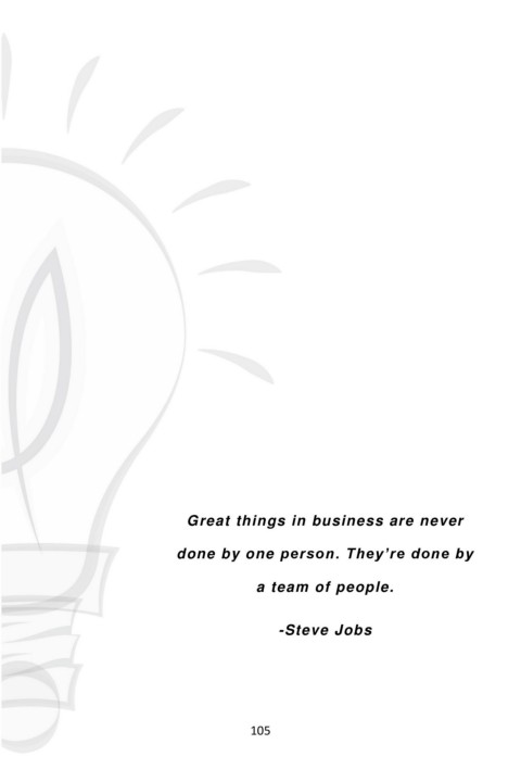 Great things in business are never done by one person. They’re done by a team of people. -Steve Jobs 105 HOME | NEXT | BACK