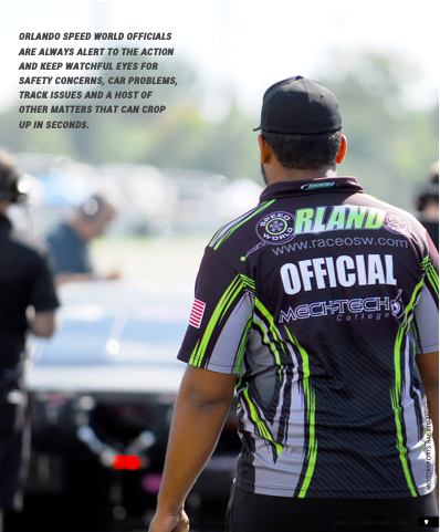 orlando speed world oFFiCials are always alert to the aCtion and keep watChFul eyes For saFety ConCerns, Car probleMs, traCk issues and a host oF other Matters that Can Crop up in seConds. JAN - feb 2020 DRAG RACING MAGAZINE 9 MOTORSPORTS RACING MEDIA
