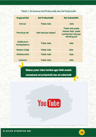 Tabel 1. Perbedaan Sel Prokariotik dan Sel Eukariotik
