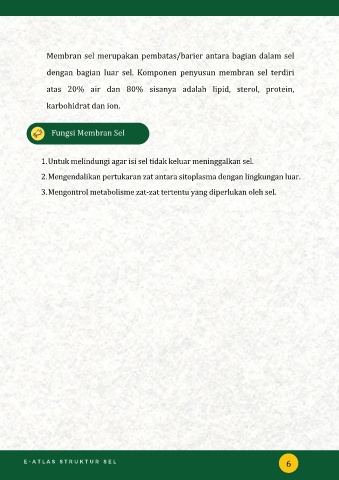 Membran sel merupakan pembatas/barier antara bagian dalam sel