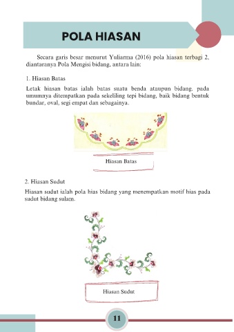 Secara garis besar menurut Yuliarma (2016) pola hiasan terbagi 2,