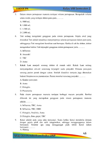 8. Pada sistem pernapasan manusia terdapat berbagai macam penyakit. Berikut