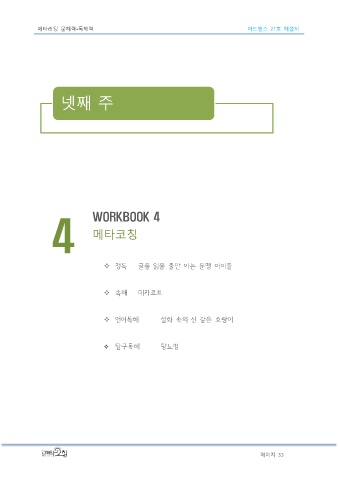 메타리딩 문해력•독해력 어드밴스 21호 해설지 넷째 주 WORKBOOK 4 메타코칭 4 정독 글을 읽을 줄만 아는 문맹 아이들 속해 데카르트 언어독해 설화 속의 신 같은 호랑이 탐구독해 당뇨병 페이지 33