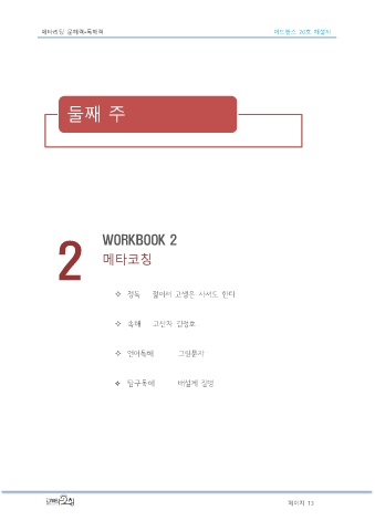 메타리딩 문해력•독해력 어드밴스 20호 해설지 둘째 주 WORKBOOK 2 메타코칭 2 정독 젊어서 고생은 사서도 한다 속해 고산자 김정호 언어독해 그림문자 탐구독해 배설계 질병 페이지 13