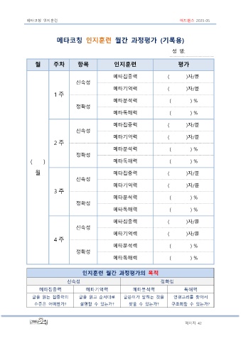 메타코칭 인지훈련 월간 과정평가 (기록용)