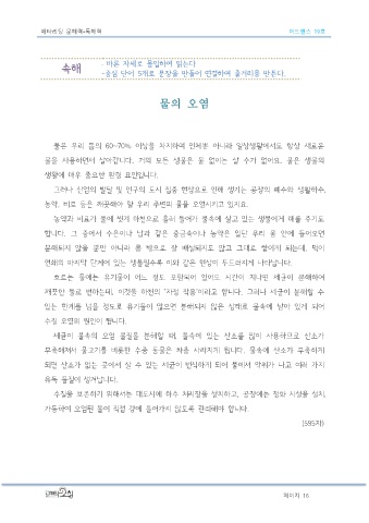 물은  우리  몸의  60~70%  이상을  차지하며  인체뿐  아니라  일상생활에서도  항상  새로운