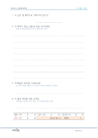 (각 문단의 중심 내용에서 가장 중요한 요지를 서술형으로 요약정리)