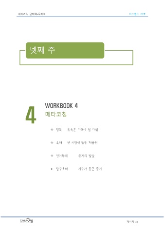 메타리딩 문해력•독해력 어드밴스 20호 넷째 주 WORKBOOK 4 메타코칭 4 정독 유혹은 피해야 할 대상 속해 첫 서양식 병원 제중원 언어독해 문자의 발달 탐구독해 지구가 둥근 증거 페이지 33