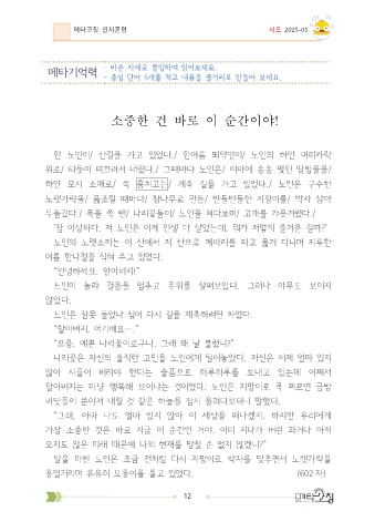 메타기억력 - 중심 단어 5개를 적고 내용을 줄거리로 만들어 보세요.