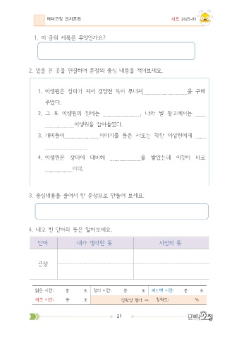 읽은 시간: 분 초 정리 시간: 분 초 피드백 시간: 분 초