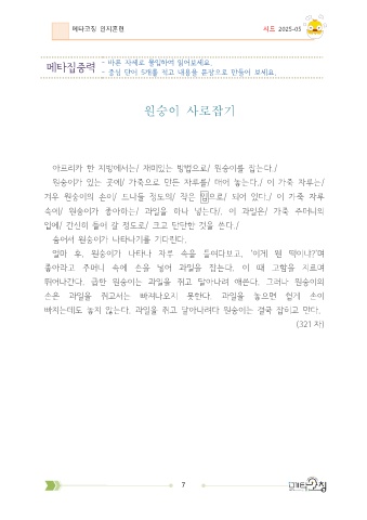 메타집중력 - 중심 단어 5개를 적고 내용을 문장으로 만들어 보세요.