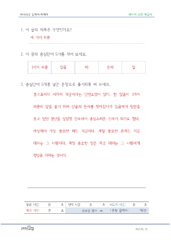Page 17 - 메타코칭 문해력 독해력 베이직 20호 해설지
