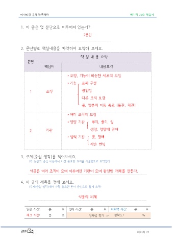 Page 21 - 메타코칭 문해력 독해력 베이직 20호 해설지
