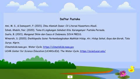 Ishab, Khabib, Nur. (2020). Tema 8 Lingkungan Sahabat Kita. Karanganyar: Pustaka Persada.