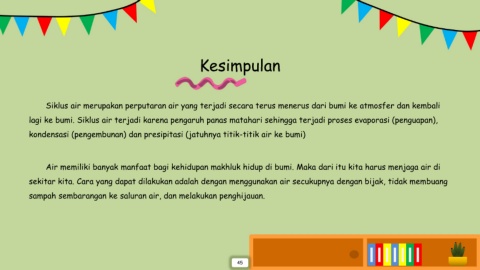 Air memiliki banyak manfaat bagi kehidupan makhluk hidup di bumi. Maka dari itu kita harus menjaga air di
