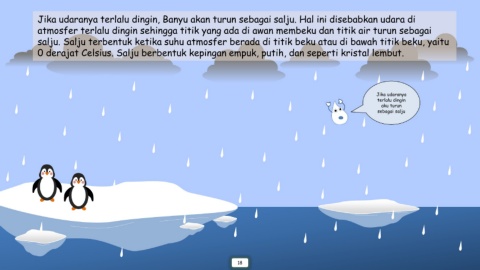 salju. Salju terbentuk ketika suhu atmosfer berada di titik beku atau di bawah titik beku, yaitu