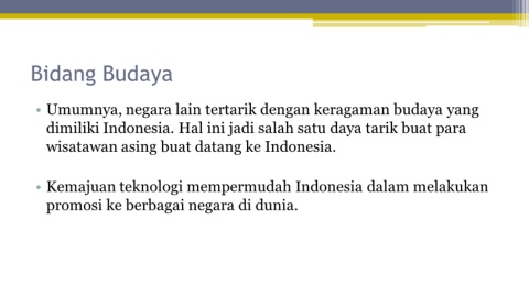 • Umumnya, negara lain tertarik dengan keragaman budaya yang
