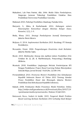 Mahadewi, Luh Putu Putrini, dkk. 2006. Media Video Pembelajaran.