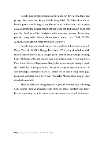 Penulis juga aktif melakukan pengembangan diri, mengadopsi alat