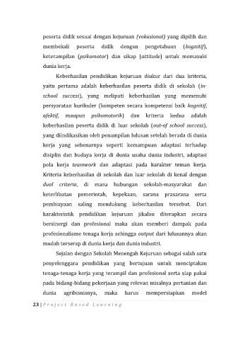 Keberhasilan pendidikan kejuruan diukur dari dua kriteria,