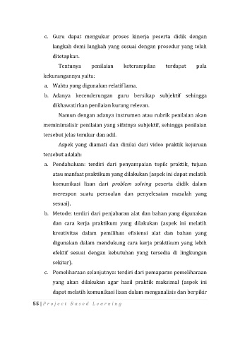c. Guru dapat mengukur proses kinerja peserta didik dengan
