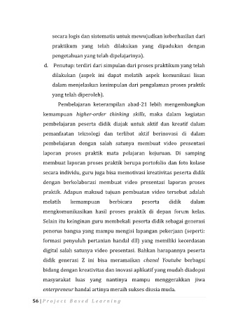 dalam menjelaskan kesimpulan dari pengalaman proses praktik