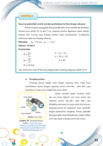 berturut-turut adalah 50 cm dan 5 cm. teropong tersebut digunakan untuk melihat