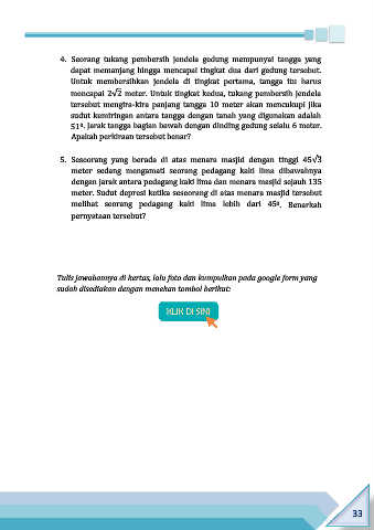 5. Seseorang yang berada di atas menara masjid dengan tinggi 45√