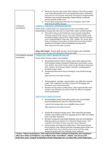 pengamatannya dengan data-data atau teori pada buku sumber melalui kegiatan :