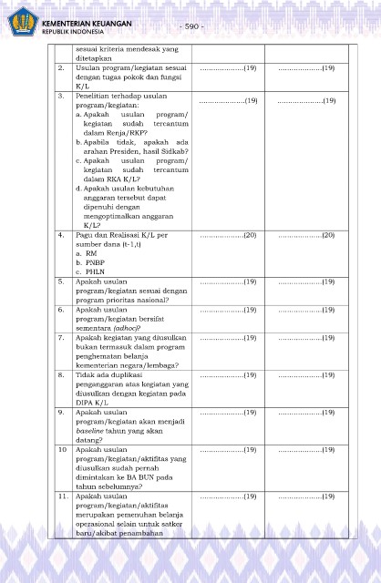 2. Usulan program/kegiatan sesuai ....................(19) ....................(19)