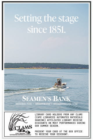 Library card holders from any CLAMS (Cape Libraries Automated Materials Sharing) affiliated library receive discounts on most performances during our summer season.
