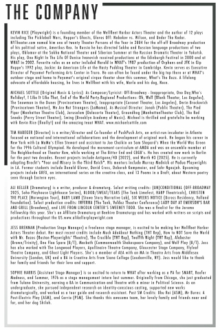 KEVIN RICE (Playwright) is a founding member of the Wellfleet Harbor Actors Theater and the author of 12 plays including The Pickleball Wars, Hopper's Ghosts, Gloves Off: Nabokov vs. Wilson, and Under The Radar. NYTheater.com named him one of twenty Theater Persons of the Year in 2004 for the off-off Broadway production of his political satire, Amerikus Rex. In Russia he has directed Sakha and Russian language productions of two plays, Oblomov at the Sakha National Theater and Siberian Summer at the Russian Dramatic Theater in Yakutsk. His play, One Night In The Life Of Denise Ivanovich received productions at the Edinburgh Festival in 2000 and at
