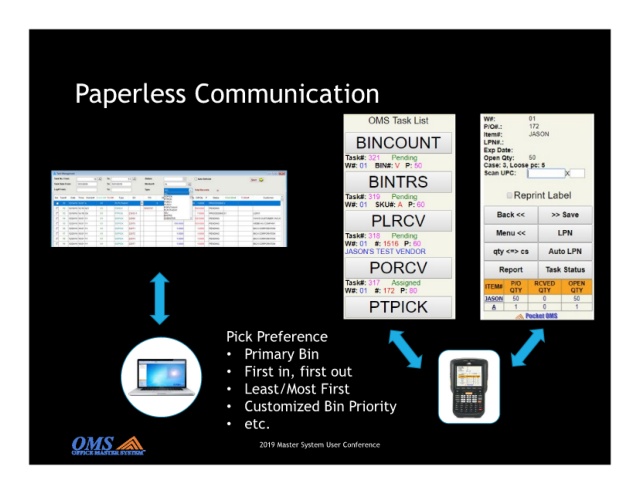 Bin Priority 2019 Master System User Conference Paperless Communication Pick Preference Primary Bin • First in, first out • Least/Most First • Customized • etc. •