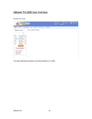 eMaster Pro B2B User Interface Home Screen *For best performance please use Internet Explorer or Firefox. eMaster Pro 55