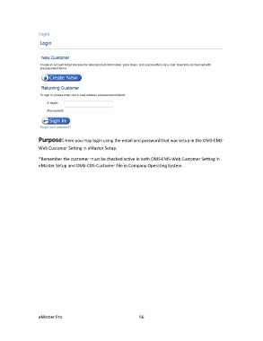 Purpose: Here you may login using the email and password that was setup in the OMS-EMS-