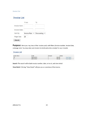 and page size). You may view each invoice in detail and print a receipt for your records.