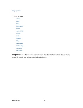 Shop by Brand Purpose: Here will show all the brands found in Web Brand Entry in eMaster Setup. Clicking on each brand will lead to items with the brand selected. eMaster Pro 64