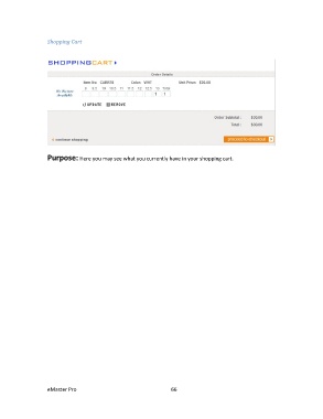 Shopping Cart Purpose: Here you may see what you currently have in your shopping cart. eMaster Pro 66