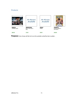 Products Purpose: Here shows all the items on the website sorted by item number. eMaster Pro 71