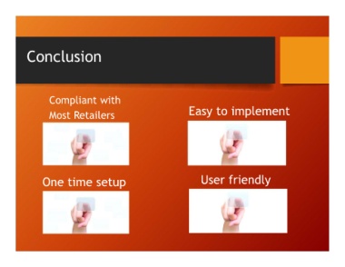 Conclusion Compliant with Most Retailers Easy to implement One time setup User friendly