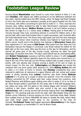 Allen’s corner. Fourth spot in the division now belongs to Wincanton Town after