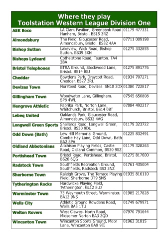 Wincanton Sports Ground, Moor 01963 31815