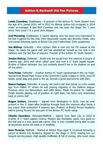 defence over the last few of seasons. Product of the Ashton FC Youth System.