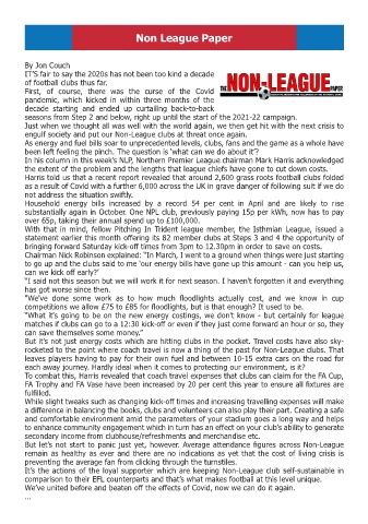 In his column in this week’s NLP, Northern Premier League chairman Mark Harris acknowledged
