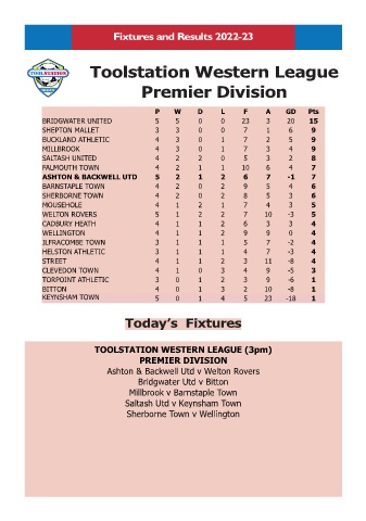 ASHTON & BACKWELL UTD 5 2 1 2 6 7 -1 7
